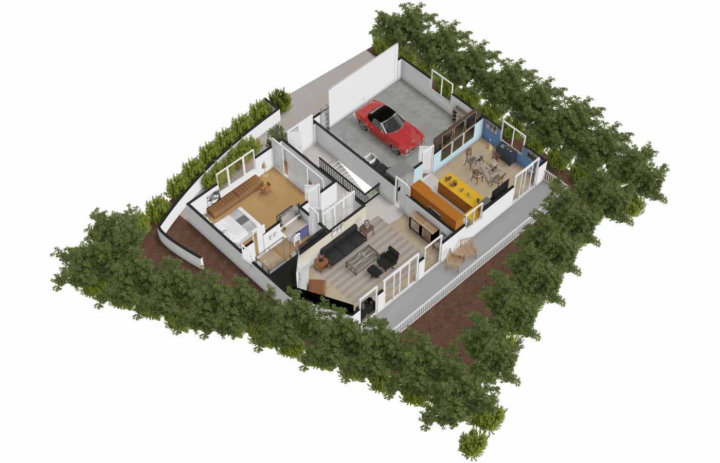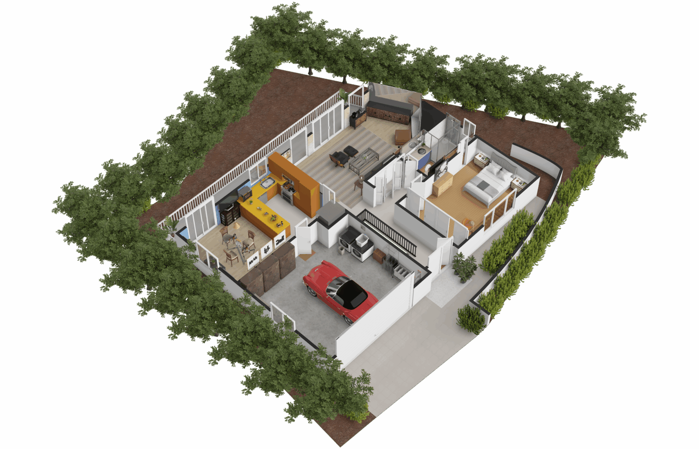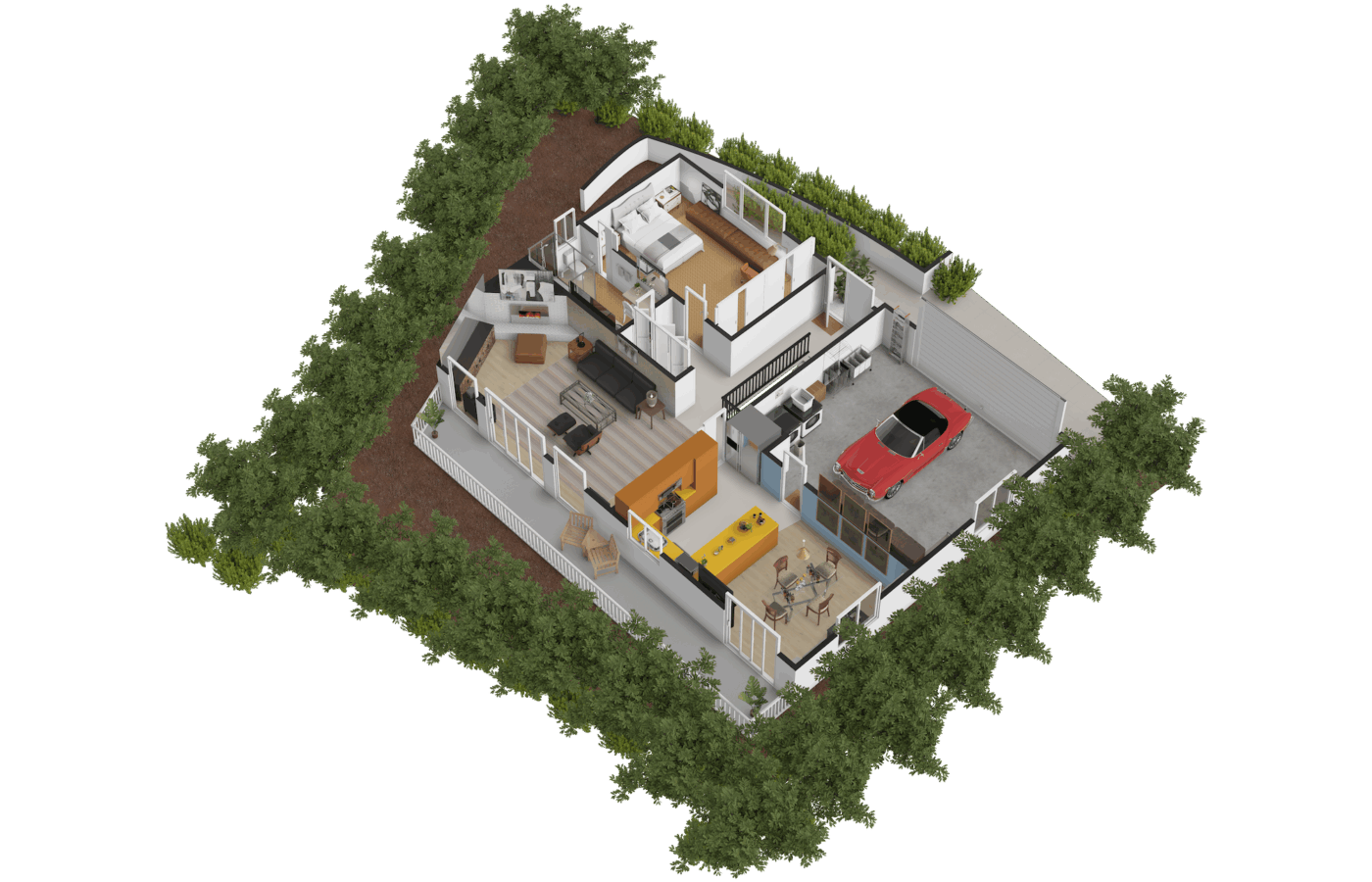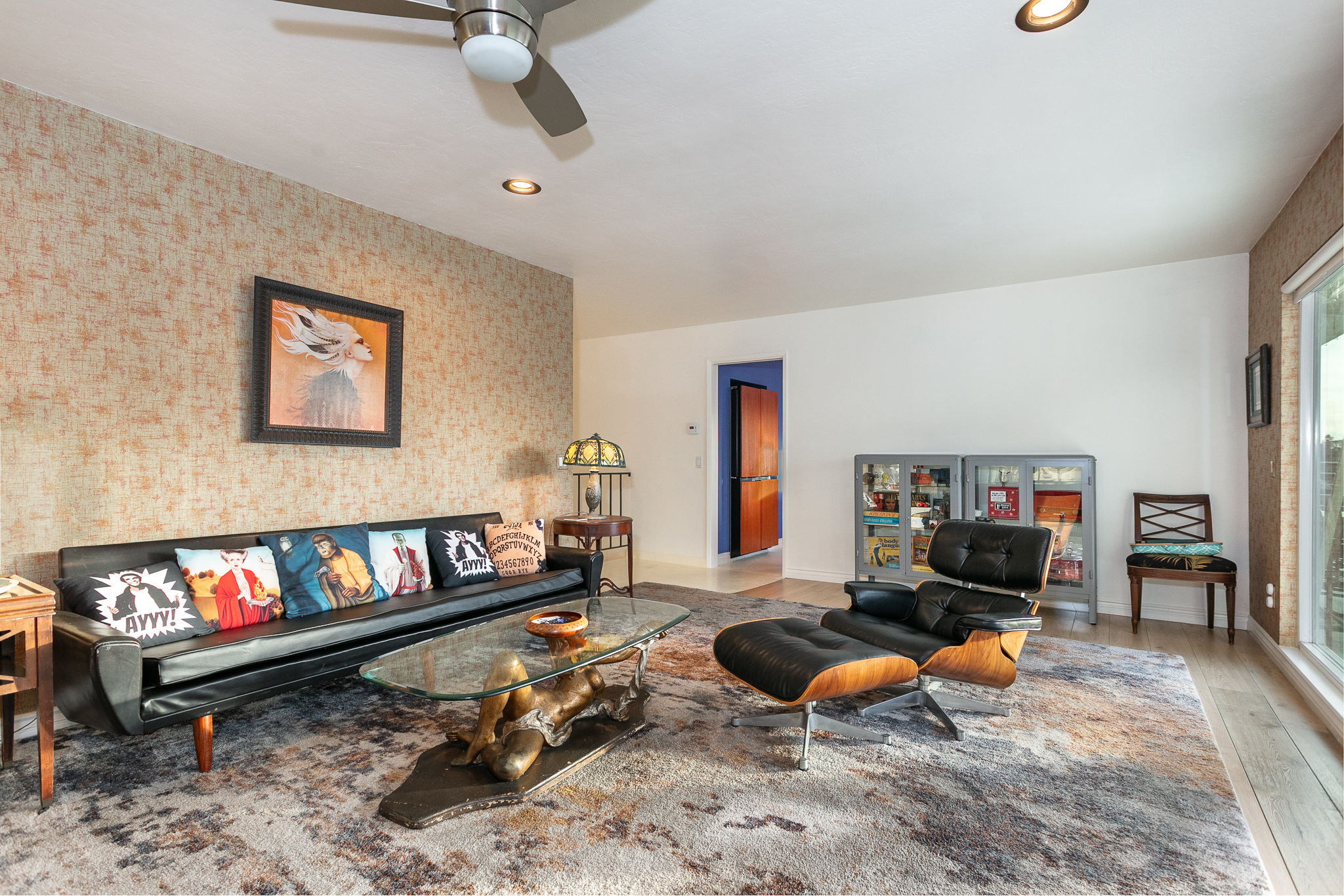 The home has been thoughtfully upgraded while retaining its original mid-century architecture. It offers three bedrooms, two bathrooms, and a functional layout that includes a living room, kitchen, dining area, and family room, totaling approximately 2,340 square feet of living space.